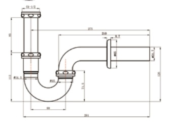 BRASS OR STAINLESS STEEL P-TRAP WITH HEXAGONAL NUTS